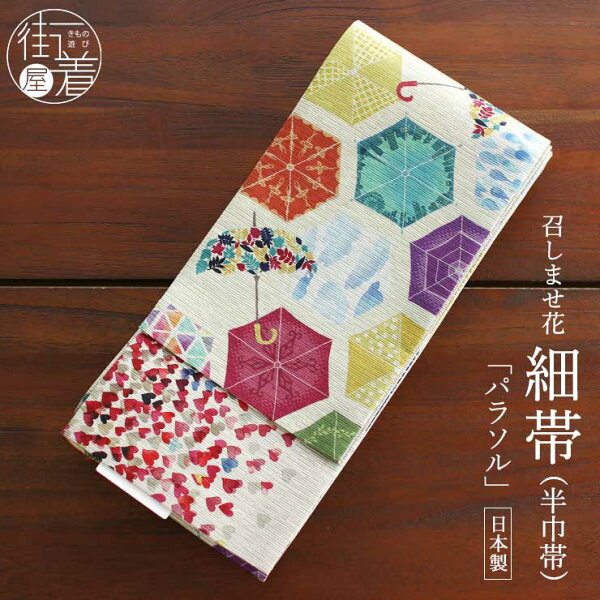 [取り扱いブランド] 創世舎 tsuki to kame 紙人形仕立て 撫松庵 召しませ花 召しませ華 嵐山よしむら 本場筑前博多織 ViVi tsumori chisato ツモリチサト 花しおり 和風館 乙葉 九重×中村里砂 JAPAN STYLE×中村里砂 玉城ティナ×紅一点 つやび×雅姫 吉田沙保里×JAPAN STYLE 芸艸堂 岡重 JILLSTUART 龍村美術きもの NATURAL BEAUTY 榛原(はいばら)Modern Antenna キスミス きもの道楽 そしてゆめ 忘れな草 高島ちぢみ 近江ちぢみ [取り扱いアイテム] 洗える 訪問着 付け下げ 留袖 黒留袖 色留袖 色無地 江戸小紋 浴衣 ゆかた 小紋 ブランド着物 ふりそで 振袖セット 袴セット はかま 長襦袢 肌襦袢 半襦袢 和装肌着 ステテコ 裾よけ ズロース 補整下着 袋帯 名古屋帯 半巾帯 細帯 小袋帯 兵児帯 帯リボン 角帯 作り帯 大島紬 結城紬 絣 草履 ぞうり 下駄 時雨履き 雪駄 雪踏 足袋 手袋 たとう紙 腰紐 伊達締め 帯締め 帯〆 帯揚げ 半衿 伊達衿 重ね衿 三分紐 四分紐 帯留め 帯飾り 前板 帯板 帯枕 きものクリップ コーリンベルト 風呂敷 マスク 和装バッグ 巾着 信玄袋 財布 和雑貨 扇子 末広 扇 髪飾り ヘアー小物 日傘 名刺入れ 晒 ハンカチ 手拭い 正座椅子 暖簾 お初着 一つ身 三つ身 四つ身 被布 着物 kimono きもの 和服 わふく 呉服 五福 ごふく 着るもの 衣服 衣類 袷 単衣 夏着物 絽きもの 羽織 はおり 道中着 道行 長羽織 コート ケープ ショール ポンチョ カッパ 合羽 雨コート ちりめん 東レ シルック 絹 シルク 綿 コットン 羊毛 ウール ポリエステル アンゴラ ベルベット「召しませ花」半幅帯 パラソル(イエローベージュ) 着物 小紋 紬 帯 細帯 半巾帯 長尺 リバーシブル 両面使える レディース 日本製 < 画像クリックで拡大 > 大人の女性が着物を着たくなる「帯」。